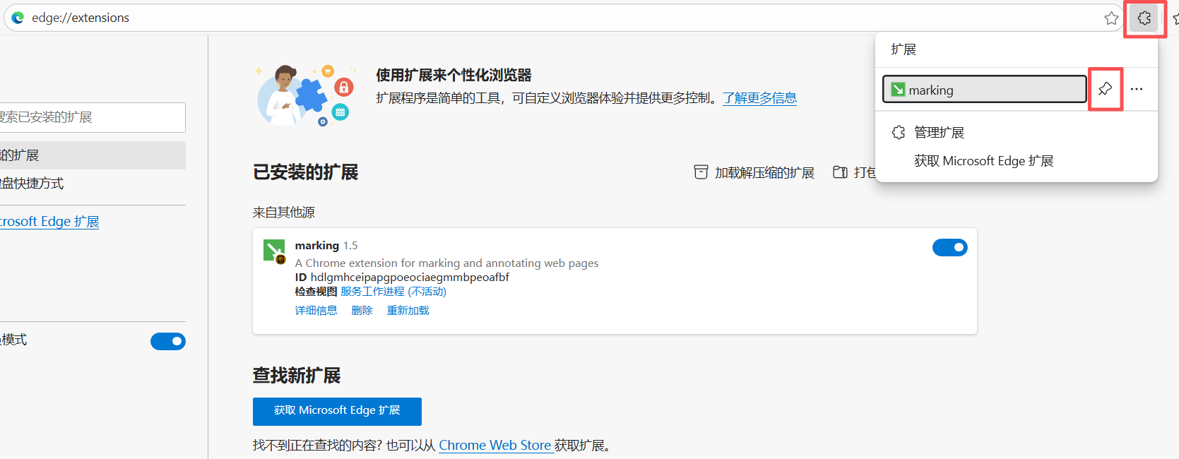 edge://extensions/,然后按Enter键。